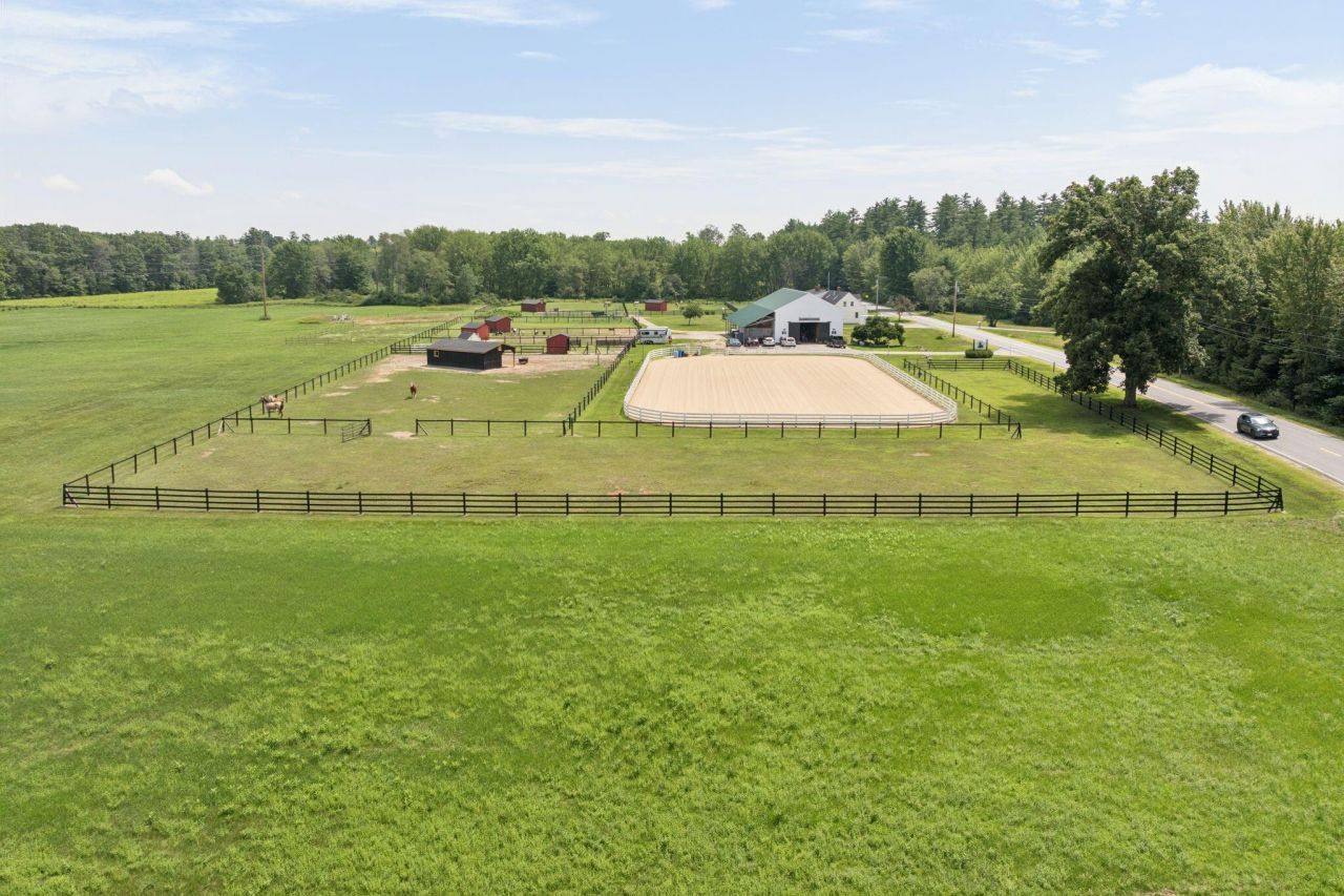 PRICE IMPROVEMENT just in time for Spring! Nestled on 17 picturesque acres along the scenic Saco River, Rivers Edge Farm is a turnkey equestrian property offering unmatched beauty & functionality. With 1,000 feet of river frontage & open, fertile land, this unique farm provides the perfect setting for both horse enthusiasts & nature lovers. At the heart of the property is a thoughtfully designed 10-stall barn featuring 12'x12' rubber-matted stalls, two spacious tack rooms, & a hayloft capable of storing up to 2,500 bales. The farm produces its own hay from 10 acres, yielding approx. 1300 bales per season. A 100' x 200' professionally footed arena ensures an ideal surface for training. Turnout is abundant with 9 paddocks, 6 run-in sheds, & 2 summer pastures, comfortably supporting up to 18 horses. Frost-free hydrants & electricity in the barns & paddocks provide effortless daily management. The updated 1794 farmhouse offers 4 bedrooms & 2 full baths, blending historic character with modern amenities. The gourmet eat-in kitchen features granite countertops, an island, induction cooktop, stainless steel appliances, & wood-burning fireplace. A dining room with a wood stove opens via French doors to the backyard oasis, complete with lush gardens, a patio, & a heated in-ground pool. Inside, the fireplaced family room, living room, & flexible first-floor bedroom share a full bath with laundry. Upstairs, find 3 more bedrooms, an office area, & another full bath, ideal for family or guests. Beyond the fields, a private dock on the river invites boating, swimming, or quiet evenings by the fire pit. The open terrain includes cross-country obstacles for training or casual rides. A shaded campsite beneath one of Maine's oldest shagbark trees offers a second fire pit & a tranquil retreat.