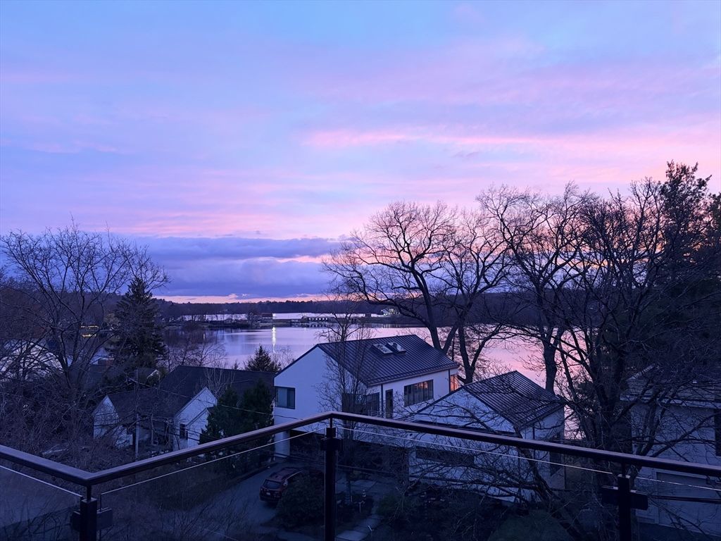 Rare water views on one of Arlingtons most sought after streets! Built in 2022 by respected developer, this contemporary home offers over 4,500sf of living space including a 300sf roof deck with views of Lower Mystic Lake. Open layout blends spacious entertaining areas with private retreats. Every bedroom is en suite, including a first floor guest suite. Sun filled chefs kitchen w/ waterfall quartz island and Thermador appliances flows into a fireplace family room, dining with built ins and out to a back porch, paved patio and flat fenced yard. Primary suite has lake views, luxury bath with heated floors, office and walk in closet. Third floor adds rec room, wet bar, fifth bedroom/bath and roof deck access. Finished lower level provides play/exercise room, custom mudroom and storage. Highlights: 2 car EV ready garage, high ceilings, oversized windows with custom treatments. Less than a mile from Arlington Center and close to the Alewife bus (Rt 3). Modern quality and a rare setting.
